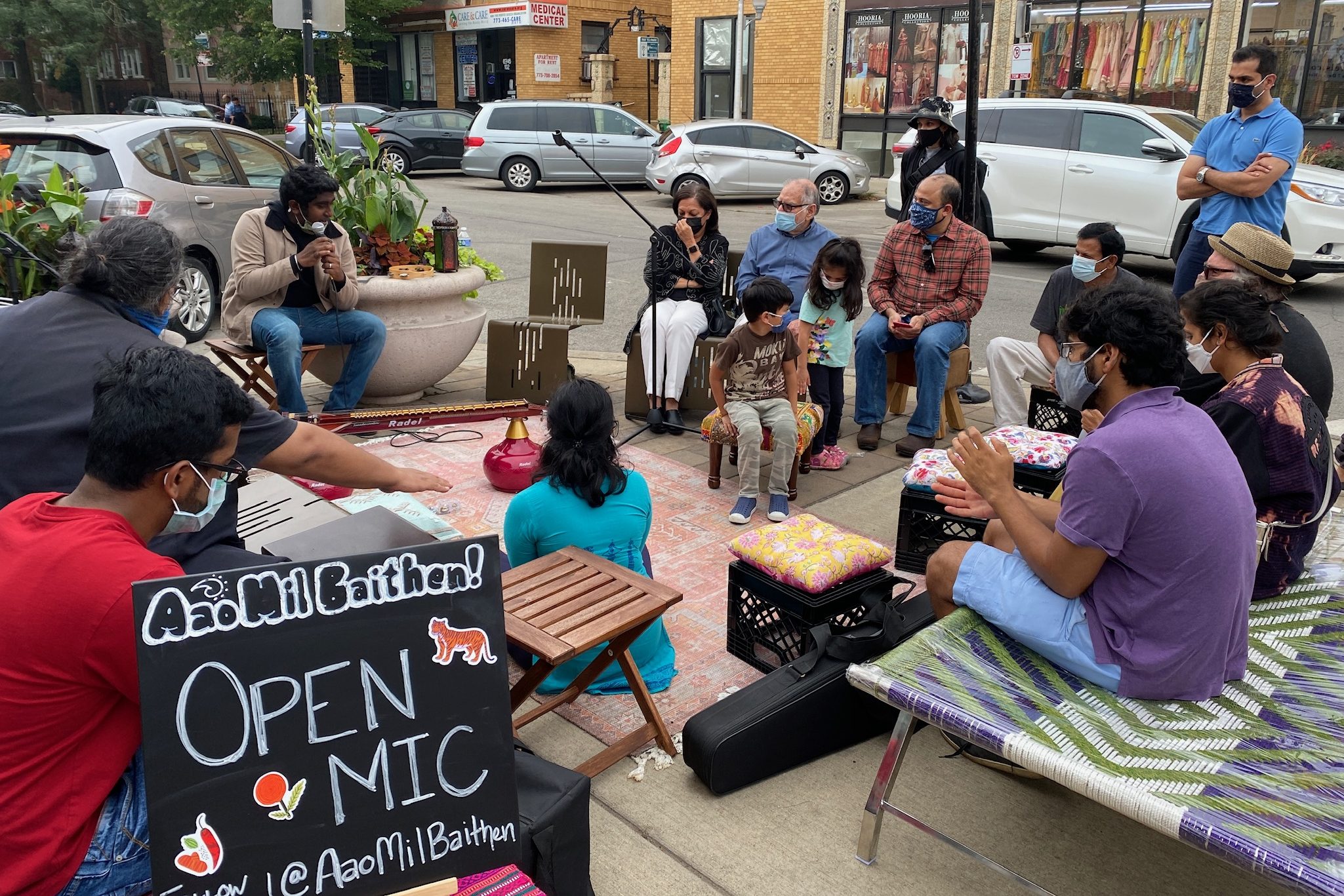 Aao Mil Baithen: Devon Avenue Arts Activation is a community-based initiative, focused on Devon Avenue, that celebrates the arts and culture of South Asia and its diaspora. Aao Mil Baithen is a project of SpaceShift Collective.